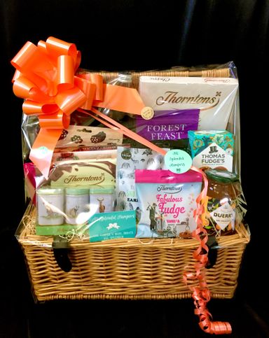 Fortnum & Mason, Monty Bojangles, Green & Backs Organic chocolate, Cartwright & Butler, Lindt, Ted Baker and many more luxurious brands are hand picked and carefully placed in our hampers.